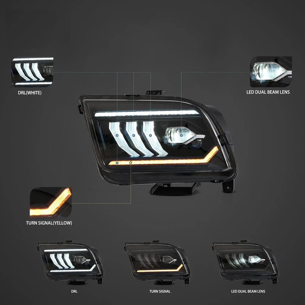 • Съвместимост: Ford Mustang MK5 (S197 I) 2005–2009, GT & V6 (с халогенни фарове)